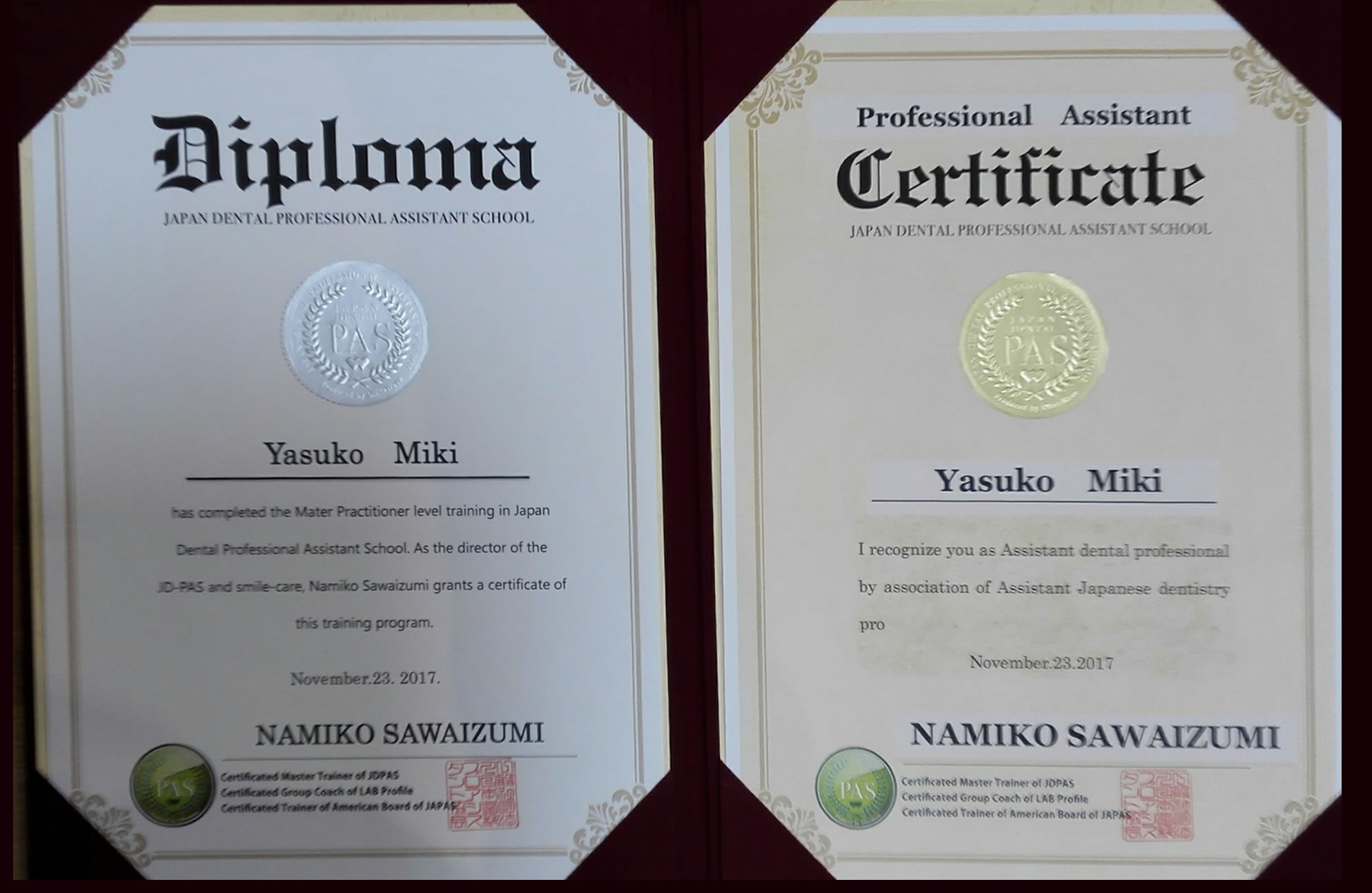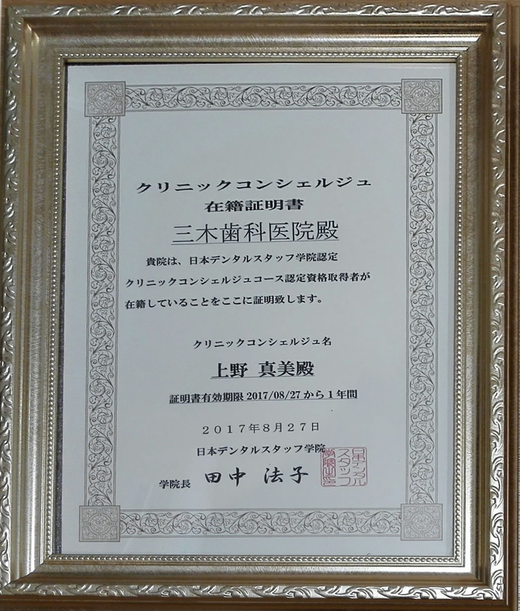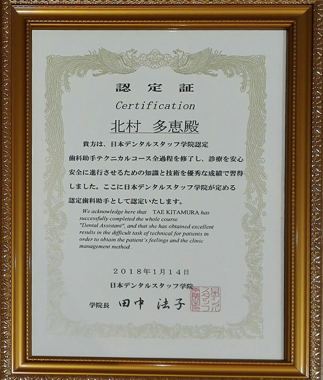 各種のセミナーや勉強会、資格取得にも自主的に参加し、医院としてもサポートしております。