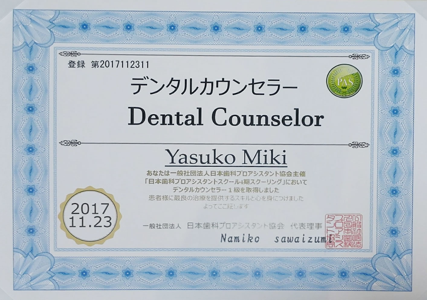 デンタルカウンセラーの資格も持つ事務長が、お悩みのご相談やお手続きについてのご相談を承ります。